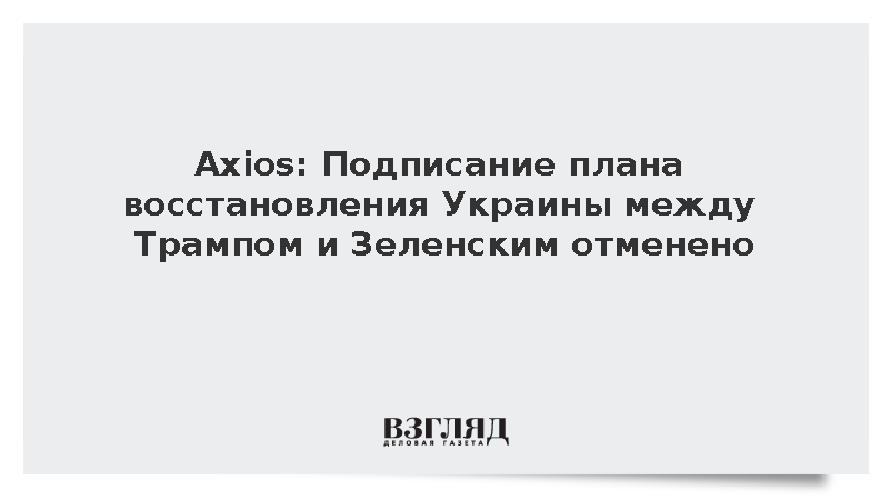 Неназванный украинский чиновник заявил Axios, что подписание плана между Трампом и Зеленским отменено, передает ТАСС.