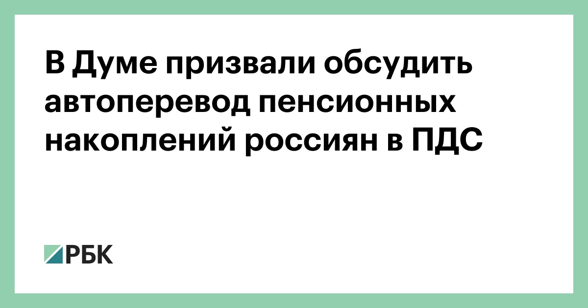 Председатель думского комитета по финансовым рынкам Анатолий Аксаков заявил, что запустит дискуссию об автоматическом перечислении пенсионных накоплений россиян из негосударственных пенсионных фондов (НПФ) в программу долгосрочных сбережений (ПДС). С такой инициативой он выступил на сессии «Кто заплатит за нашу старость? Smart-управление пенсионными активами» на фестивале «Т-Двор» в Санкт-Петербурге, передает корреспондент РБК.