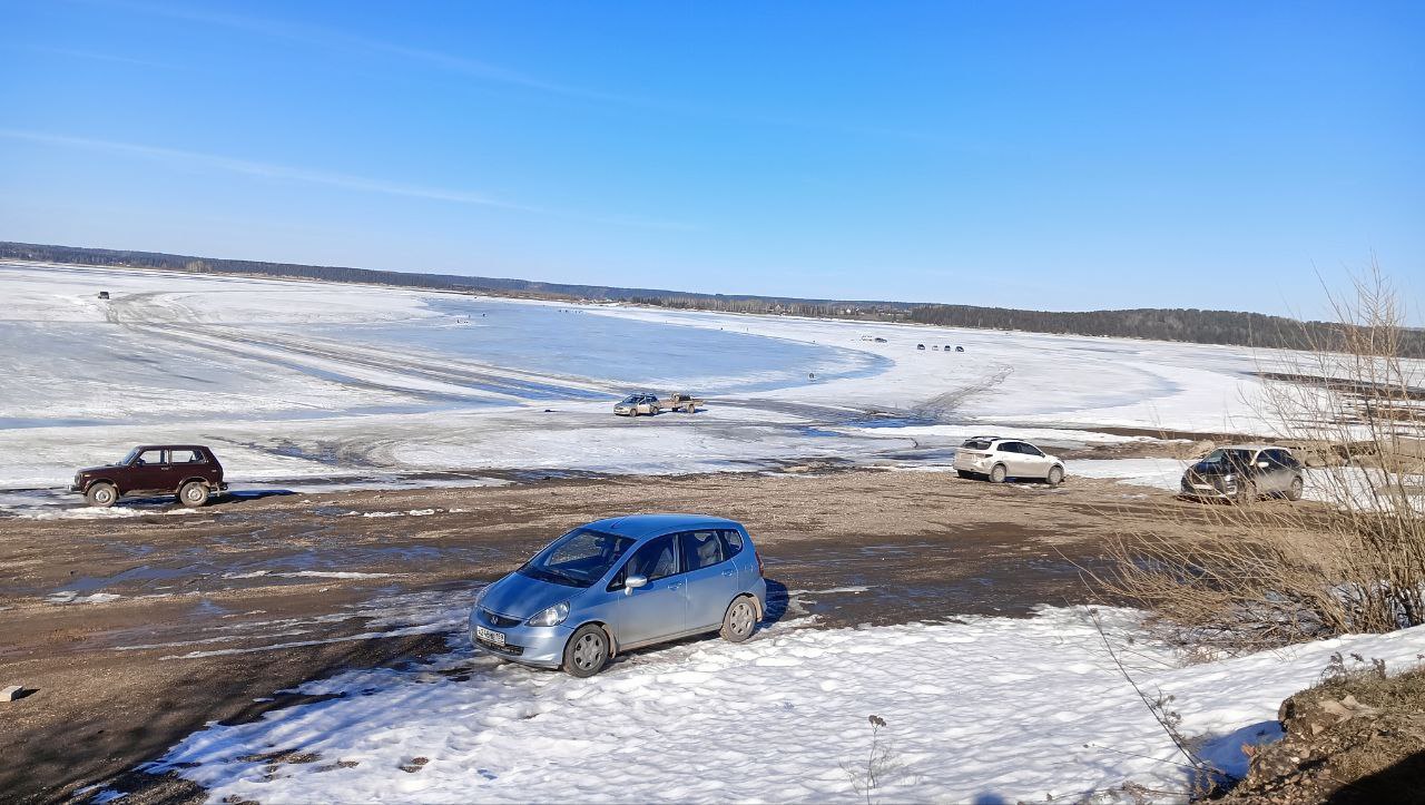 Еще немного о том, как быстро весной тает лед, и что лучше не рисковать. Еще пять дней назад ледовая переправа через Сылву в деревне Мостовая Пермского района выглядела вот так: