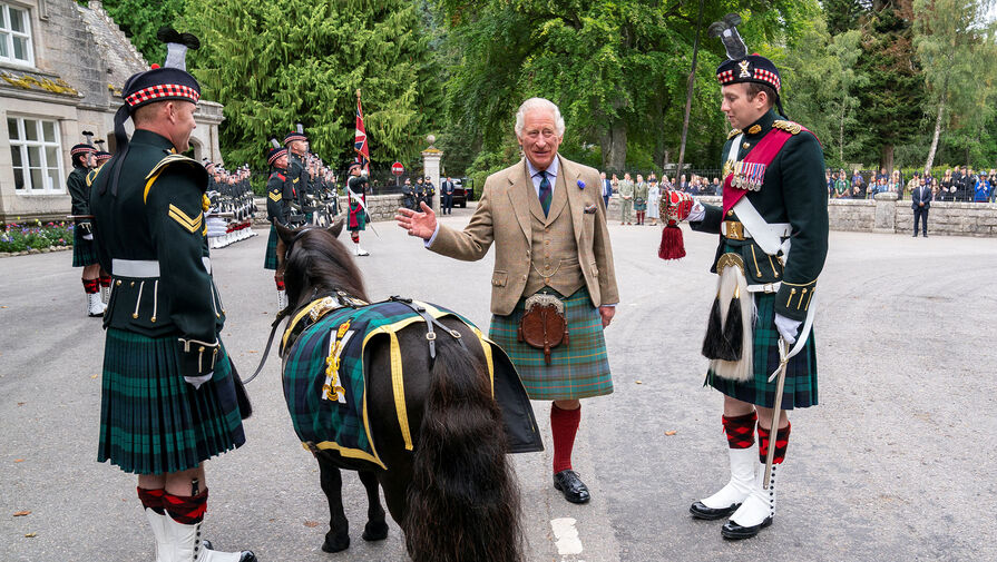 74-летнего короля встретили церемонией за воротами замка. Британский монарх осмотрел почетный караул Балаклавской роты 5-го батальона Королевского полка Шотландии, а военные сыграли для него на трубах и барабанах.