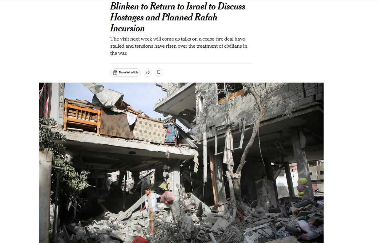 🇺🇸🇮🇱 The New York Times: госсекретарь Блинкен прилетит на переговоры в Израиль на фоне растущей напряженности отношений израильтян с США