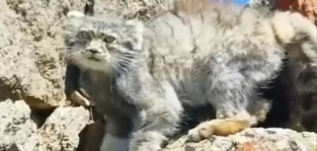 По словам мужчины, ранее он уже видел манулов, но так близко – впервые. Дикий кот недолго позировал на камеру, а после ушел и скрылся за камнями.