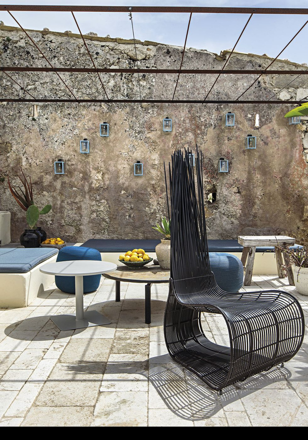 Массерия — так итальянцы называют виллы, построенные в XVI–XIX веках «фермерами» — местными аристократами, пожелавшими умножить свое состояние, производя вино, масло и другие типично средиземноморские продукты. Увидев одну из таких массерий — Dimora delle Balze, расположенную между городами Ното и Сиракузы на Сицилии, сценограф и дизайнер Елена Лопс (Elena Lops) поняла: именно такое место она искала, чтобы сделать отель своей мечты.