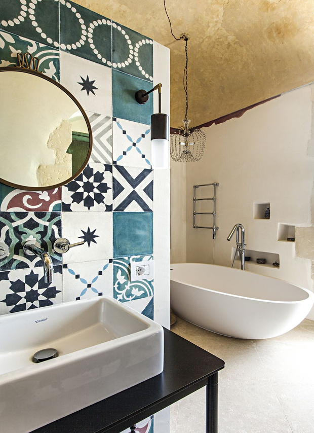 Бывшие конюшни стали номерами и залом для завтраков, пол главного дома декорировали мозаикой ручной работы из Марокко, а единственный чудом уцелевший камин стал прототипом для всех остальных. Современная деталь, подчеркивающая старину, — светильники, выполненные по дизайну Луки Туррини (Luka Turrini).