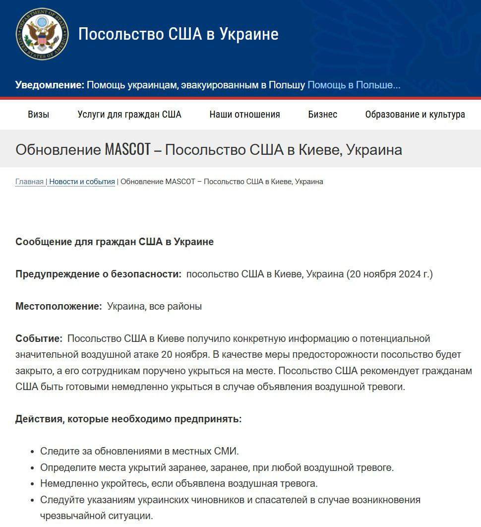 Сегодня может быть нанесен мощный ракетный удар по Украине, мы получили конкретные данные, - посольство США в Киеве.