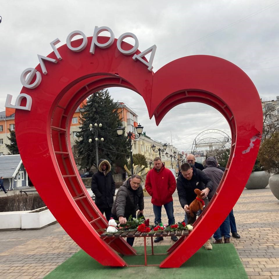 Белгородцы несут цветы и игрушки к двум стихийным мемориалам в память о погибших в результате вчерашнего обстрела ВСУ.