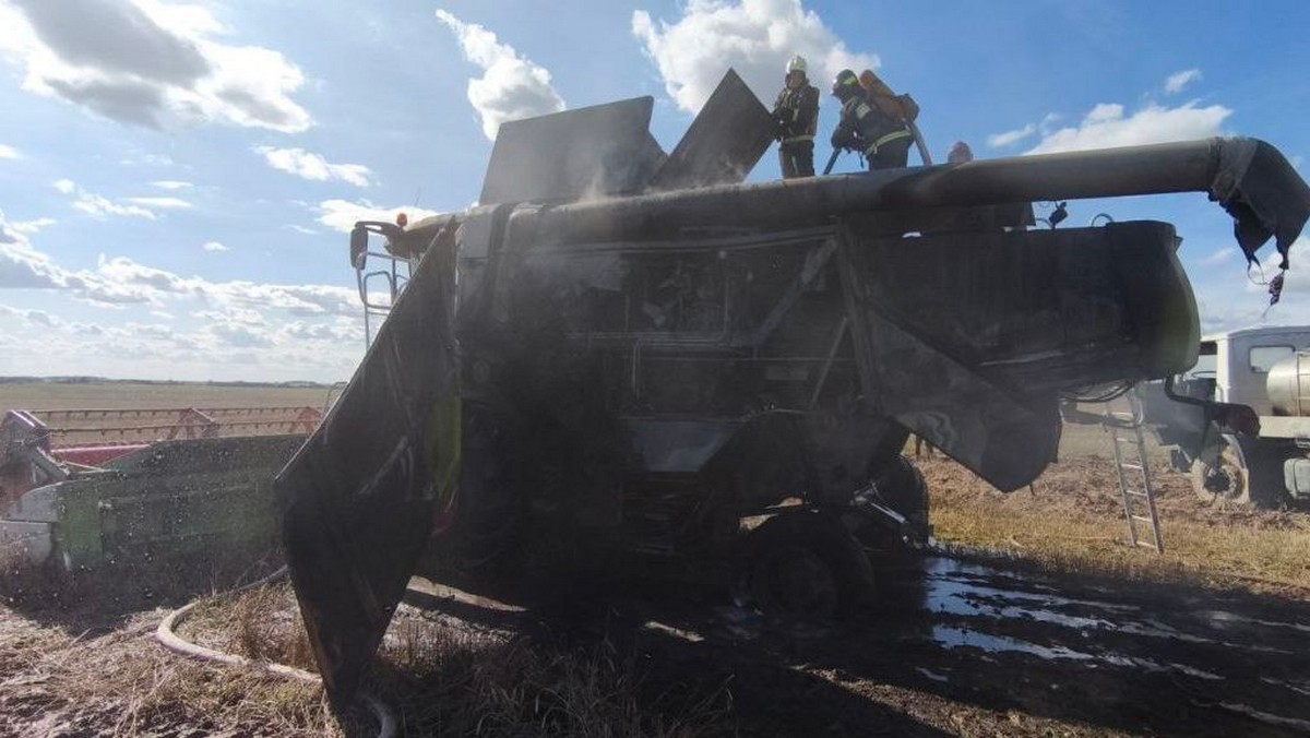 Огонь повредил лакокрасочное покрытие бункера, заднее левое колесо и моторный отсек комбайна. Точные причины инцидента устанавливаются.