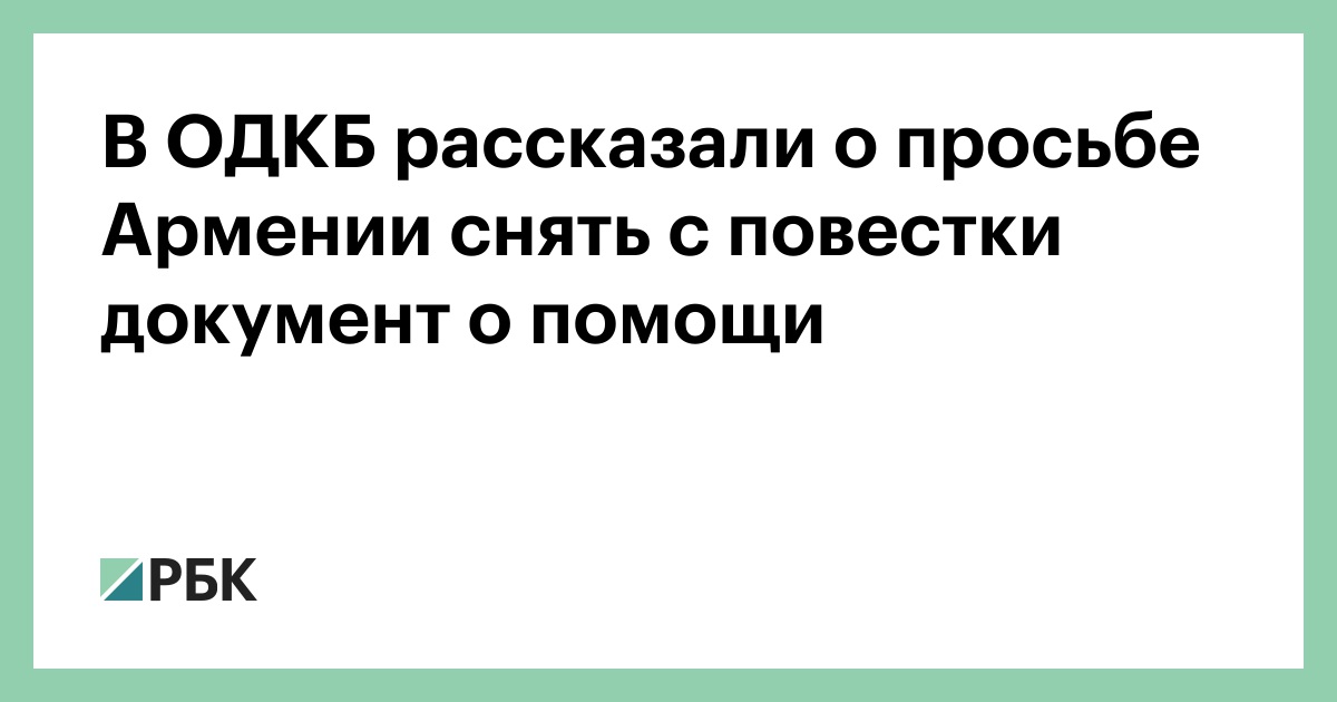 Армения попросила партнеров по Организации договора о коллективной безопасности (ОДКБ) снять с повестки саммита, который планируют провести в Минске 23 ноября, документ о помощи Еревану. Об этом сообщил генеральный секретарь организации Имангали Тасмагамбетов на встрече с президентом Белоруссии Александром Лукашенко.