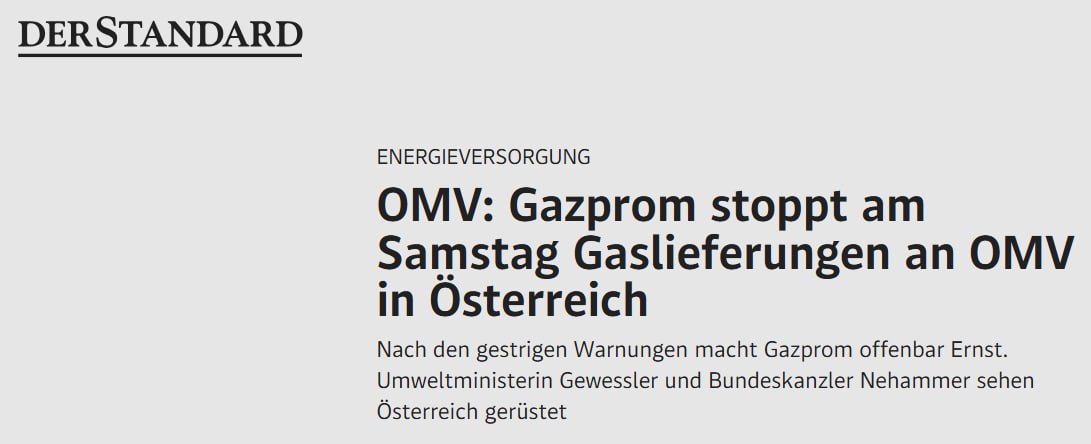 🇷🇺✖️🇦🇹 Россия прекращает поставки газа в Австрию — Der Standard