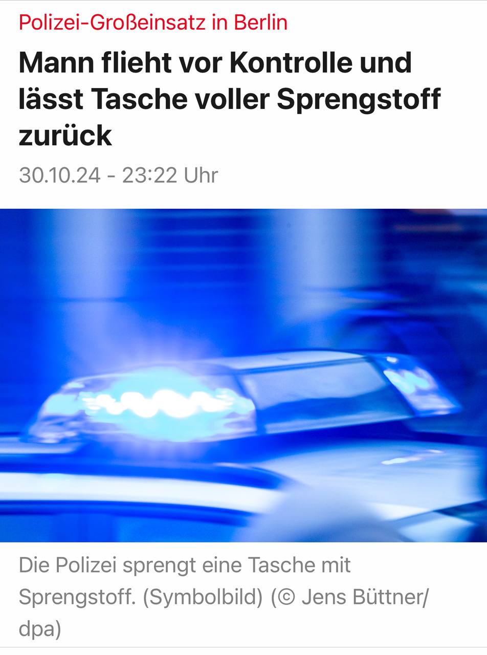 Берлин. Сумку с бомбой нашли во время контроля, случайно остановленной машины, полицейские. Владельцу машины удалось сбежать, а сумку пришлось взорвать на месте. Полиция не называет имя преступника и не сообщает подробностей. Ясно одно – готовился террористический акт в столице Германии