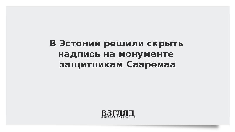 Департамент охраны памятников старины Эстонии разрешил скрыть часть монумента защитникам острова Сааремаа с надписью, посвященной советским воинам-освободителям. Местные власти считают, что обелиск с таким текстом символизирует пропаганду и планируют скрыть надпись до конца этого года, сообщает ТАСС.