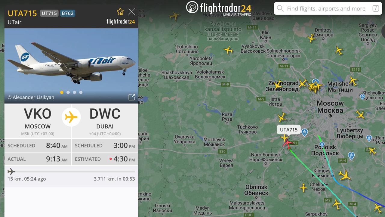 Boeing 767 авиакомпании UTair Москва — Дубай совершает аварийную посадку в столичном аэропорту Внуково. Предварительно, из-за того, что во время полёта потекла гидравлическая жидкость.