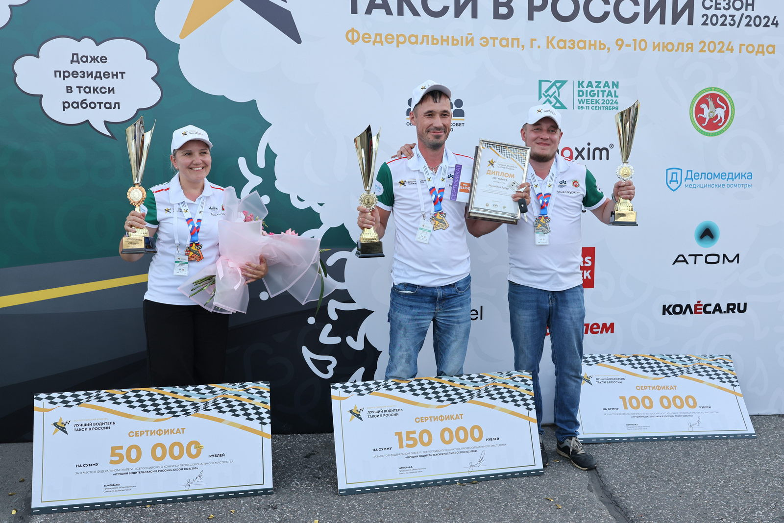 Победитель получил главный приз – автомобиль «Лада Веста» – и 150 тысяч рублей от организаторов: правительства Республики Татарстана и Общественного Совета по развитию такси. Участникам, занявшим 2 и 3 места, вручили 100 тысяч и 50 тысяч рублей соответственно.