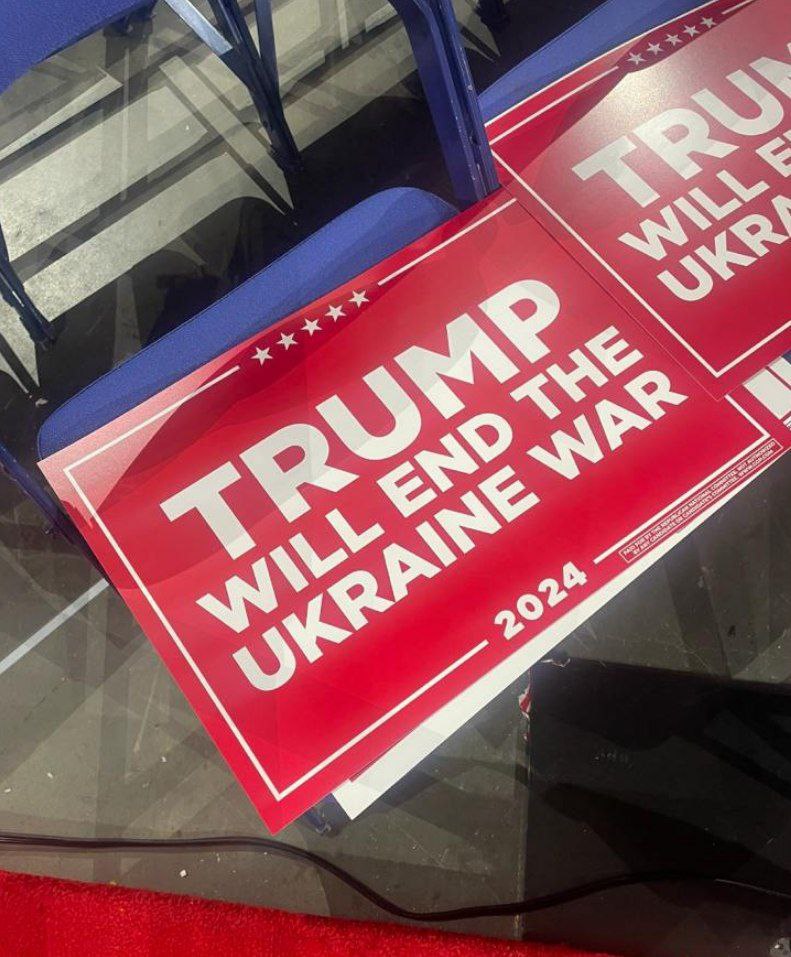 На съезде Республиканской партии в Милуоки делегатам раздавали таблички с надписью: «Трамп закончит войну на Украине».