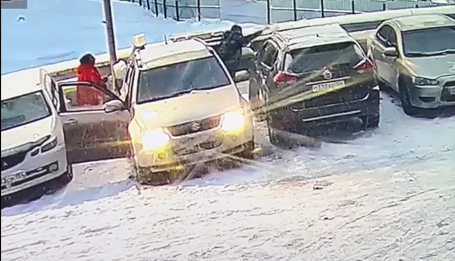 Водитель джипа «Сузуки» облил маслом лобовое стекло автомобиля, припаркованного слишком близко к его машине. Видео некрасивого поступка запечатлели камеры наблюдения.