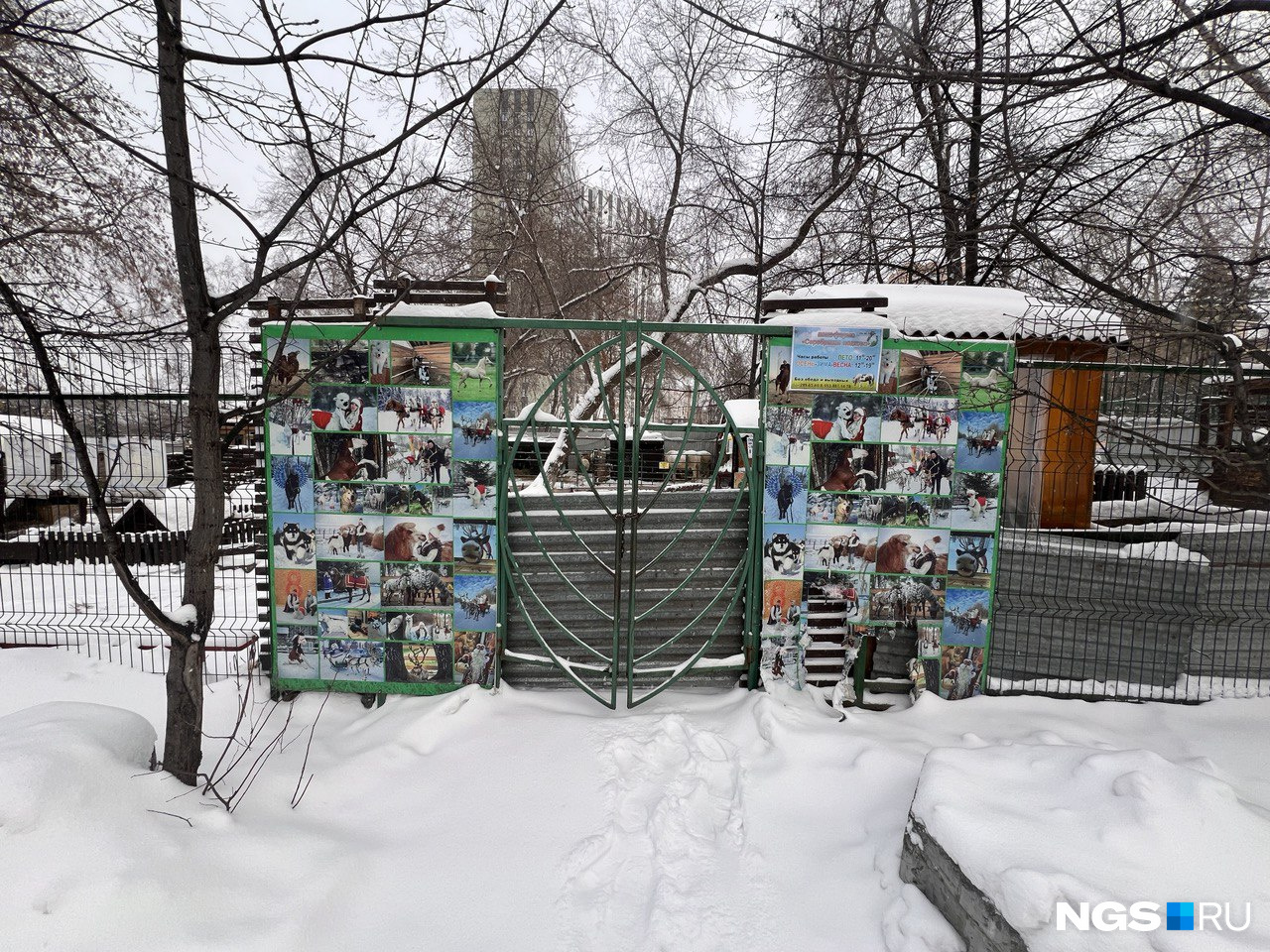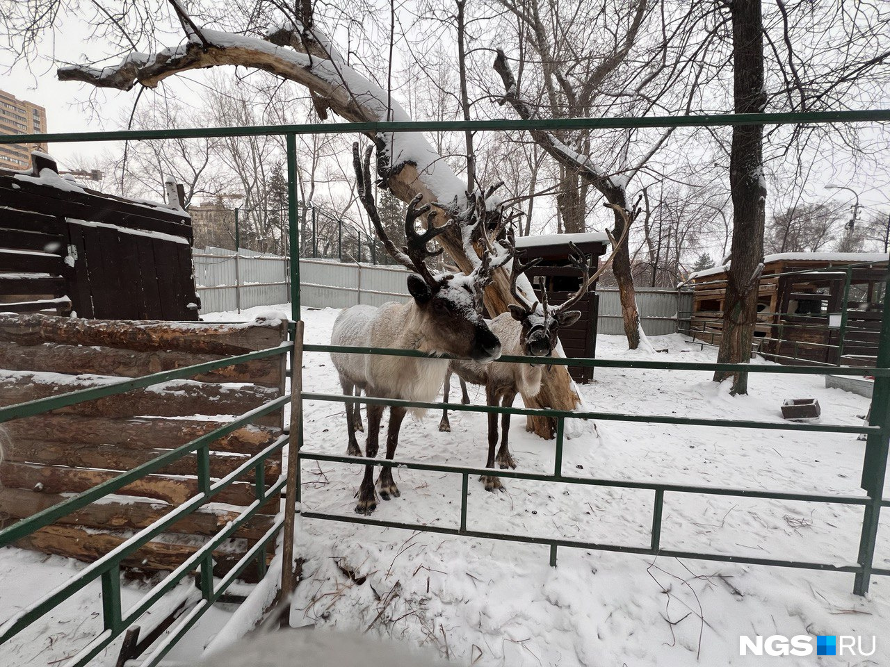 Корреспондент НГСвыяснила на месте, что для посетителей во время морозов ферма не работает, да и люди особо не идут, хотя в хорошую погоду зимой сюда приходит много гостей. В контактном зоопарке действительно клетки с кроликами стоят на открытом воздухе, а помещения для коз, ламы, оленей, пони, ослика и верблюда — деревянные и с большими проемами вверху. Вольеры оказались довольно компактными. Ездовые маламуты сидят в хорошо огражденном вольере за замком.