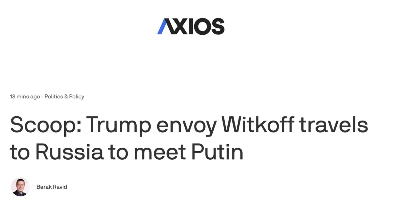 Спецпредставитель Трампа Уиткофф без анонса прилетел в Москву, чтобы сегодня встретиться с Путиным, заявляет Axios со ссылкой на источник и данные FlightRadar.