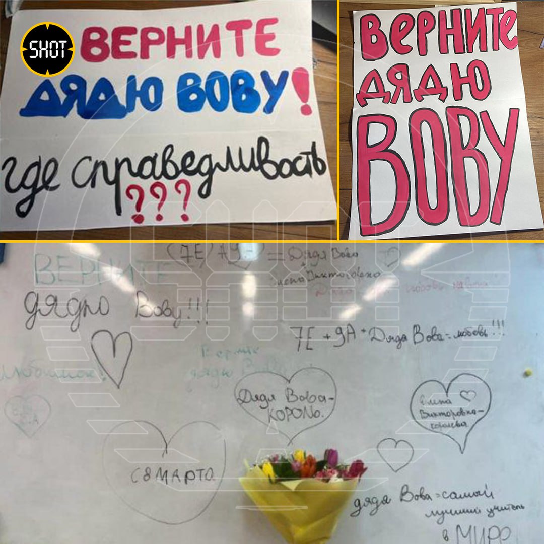"Верните дядю Вову!", "За дядю Вову!!!", "Нам нужен дядя Вова!"