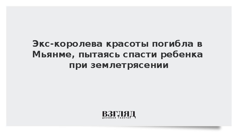 «Королеву красоты нашли погребенной под зданием после того, как она пыталась спасти ребенка во время землетрясения в Мьянме», – приводит РИА «Новости» текст сообщения Need To Know.