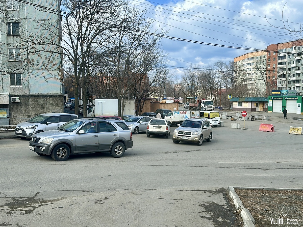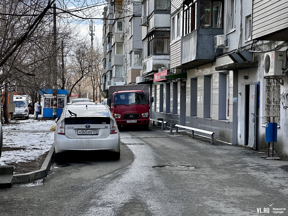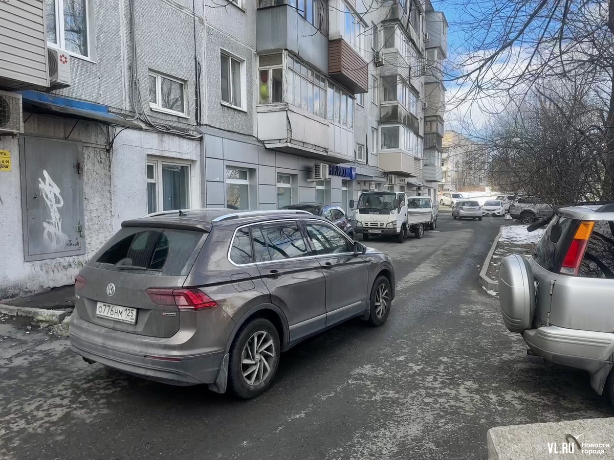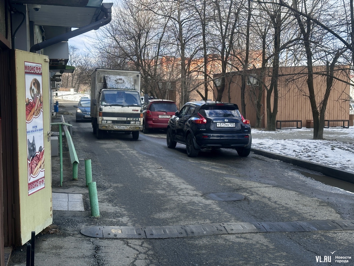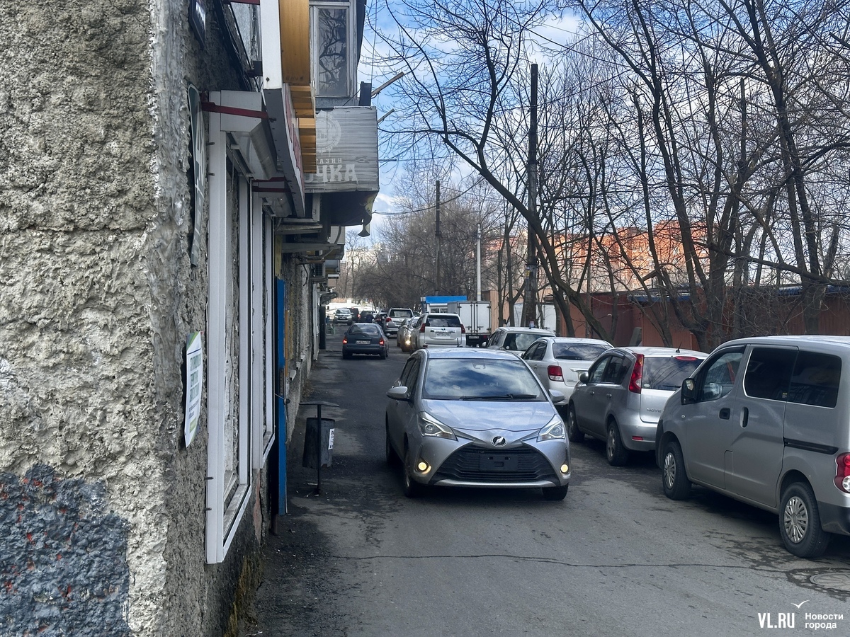 Когда корреспондент Новостей VL.ru приехал на место, застал плотный трафик с той стороны дома, где расположены торговые помещения на цокольном этаже. Дорога там узкая и с одной стороны запаркована, из-за этого машины не могут разъехаться и водителям приходится пропускать тех, кто двигается им на встречу. Не все водители успевают реагировать, когда на дороге появляются пешеходы. Журналист заметил, как люди, выходящие из магазинов, резко прислонялись к стене дома, чтобы не попасть под колеса машин.
