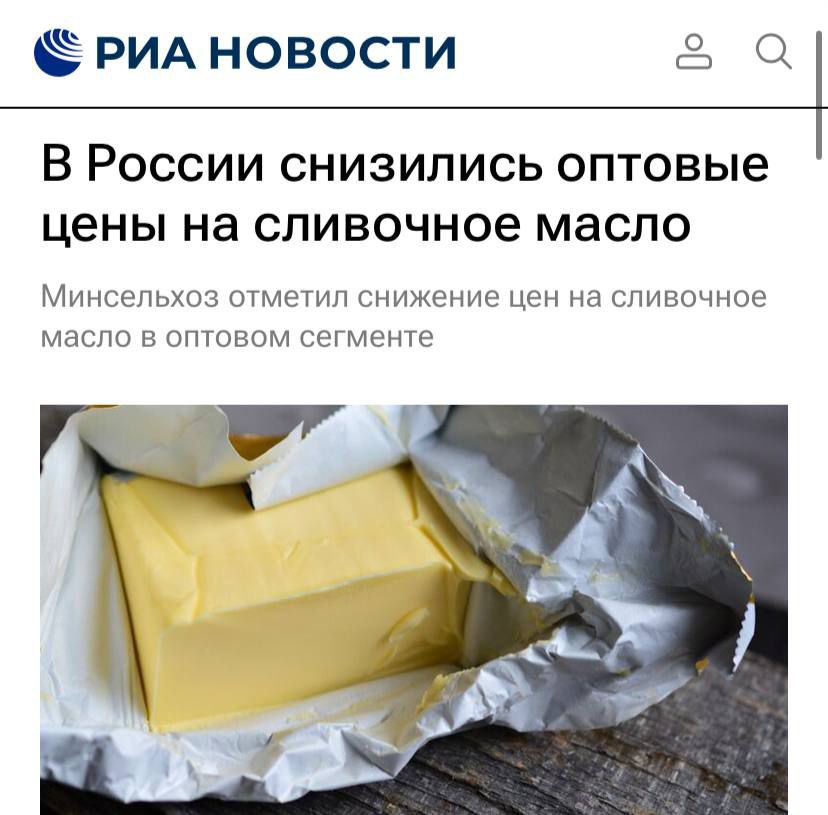 К вопросу о сливочном масле. Минсельхоз добился снижения оптовых цен.