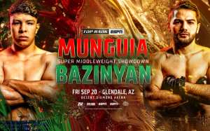 В ночь на 21 сентября в Глендейле (США) пройдёт вечер бокса, главным событием которого станет поединок в суперсреднем весе между мексиканцем Хайме Мунгией и уроженцем Армении Эриком Базиняном.