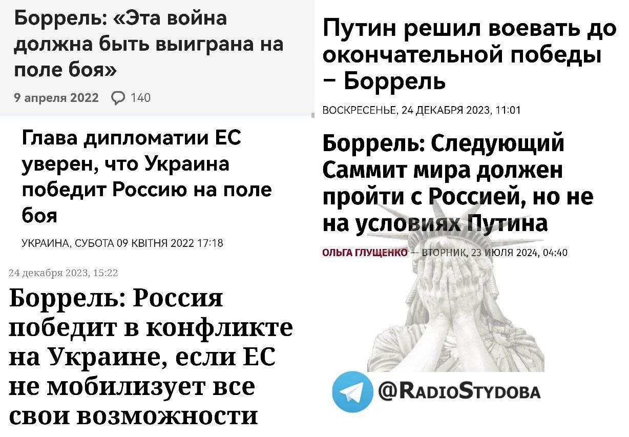 Следующая остановка Борреля: "Я всегда говорил, что только на условиях Путина мир на Украине будет крепким и справедливым".