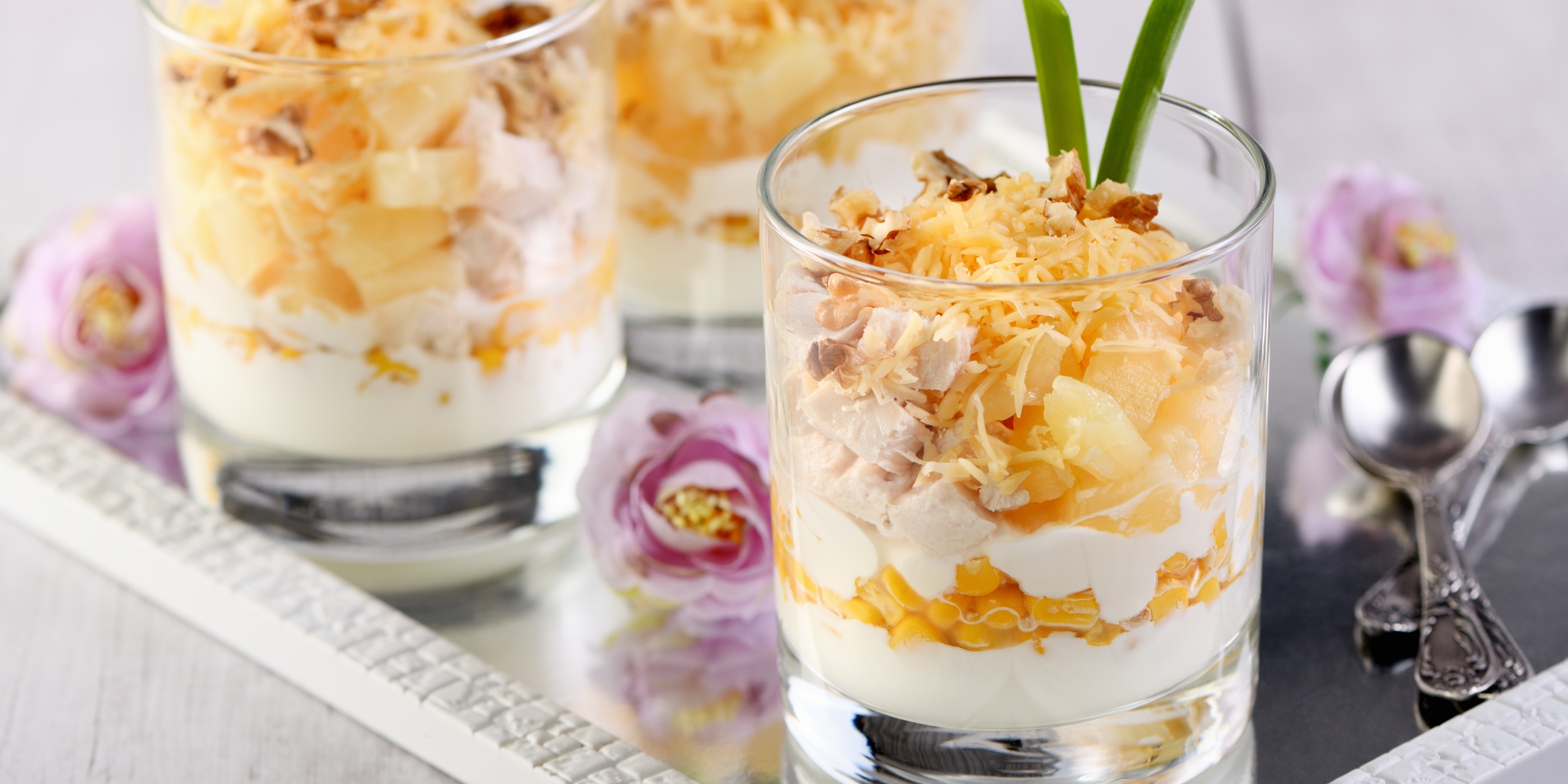 12. Салат в стакане с ананасом, курицей и греческим йогуртом