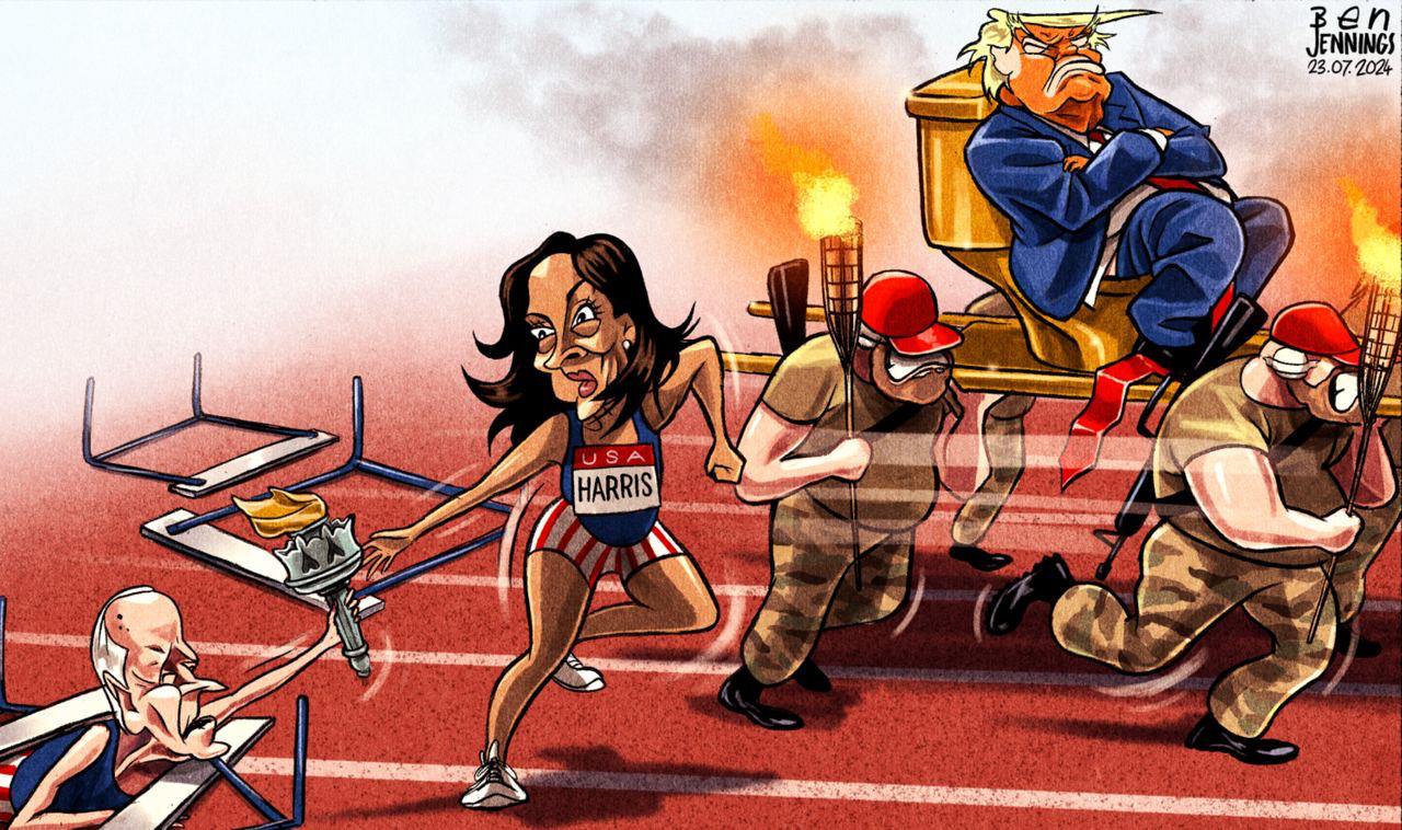 Трамп на троне, Камала Харрис принимает эстафету от упавшего Байдена.