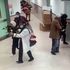 One was seen carrying a rifle in one arm and a folded wheelchair in the other.