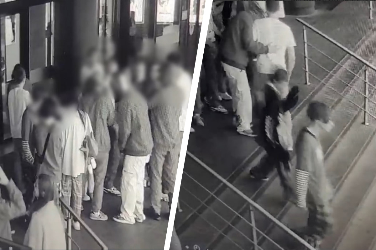 Появилось видео драки школьников у ТРЦ «Небо», где один из подростков упал с лестницы