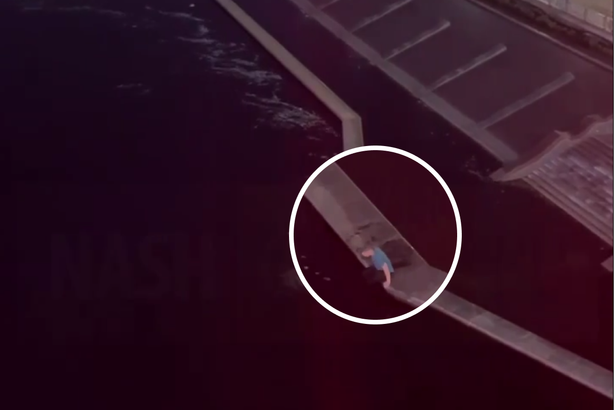 Мужчина нырнул с затопленного яруса набережной