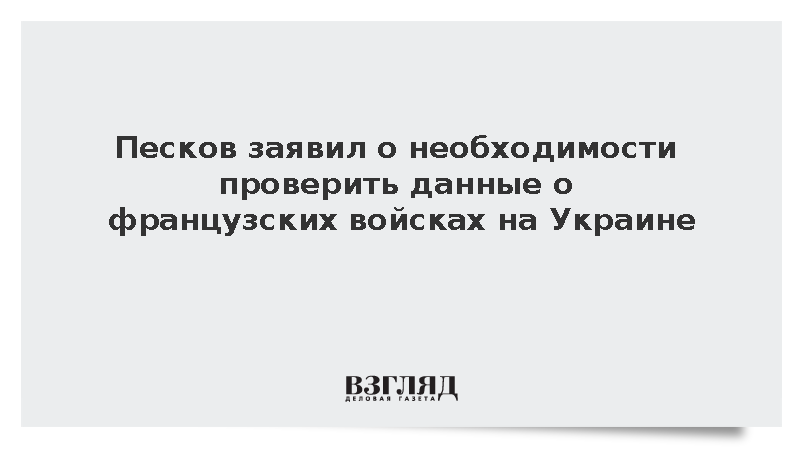 Информацию об отправке французских войск на Украину необходимо сначала проверить на достоверность, чем и занимаются российские военные, сообщил пресс-секретарь главы государства Дмитрий Песков.