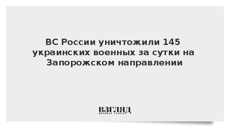 По словам начальника пресс-центра группировки Олега Чехова, вооруженные силы Украины потеряли 145 военных за сутки, передает ТАСС. Российские войска нанесли поражение живой силе и технике противника в районах Днепроэнергии, Новополя, Великой Новоселки и Сторожевого.