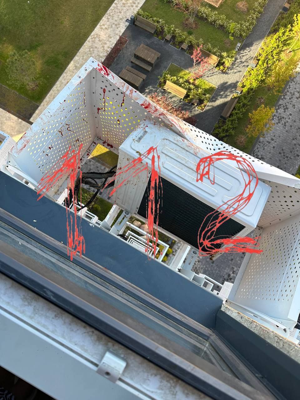 Пьяный и голый мужчина в Подмосковье выпал с 9 этажа и самопогрузился в корзину для кондёра двумя этажами ниже.