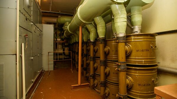 Под землей находится еще три этажа - это укрепленные бетонные помещения с массивными дверями, которые открываются с помощью металлического колеса. Раньше помещения были забиты различной аппаратурой, кое-что сохранилось даже сегодня, хотя все ценное давно унесли. Здесь же была построена своя дизельная электростанция, две насосные станции, которые качали воду из глубоких артезианских скважин, а для очистки воздуха была создана сложная система вентиляции со специальными фильтрами.
