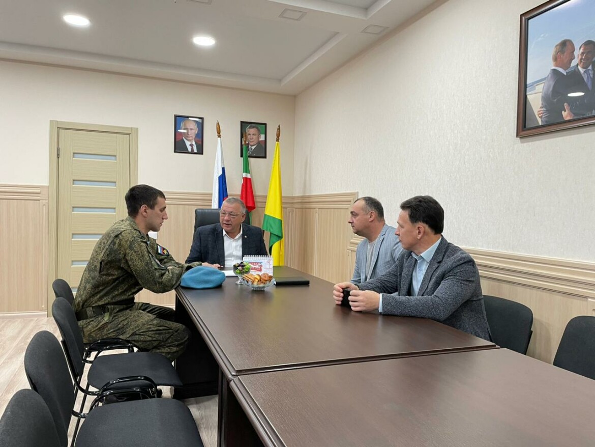 Сегодня глава Спасского района Фаргат Мухаметов встретился с бойцами спецоперации, которые находятся в краткосрочном отпуске. Встреча прошла в тёплой, дружественной обстановке.