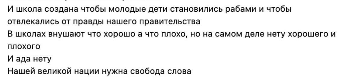 Незадолго до нападения 13-летний Рома опубликовал бредовый манифест с упоминанием Третьего Рейха. В нём он восхвалял нацистскую Германию и говорил о том, что ни плохого, ни хорошего в мире нет, как ада и рая.