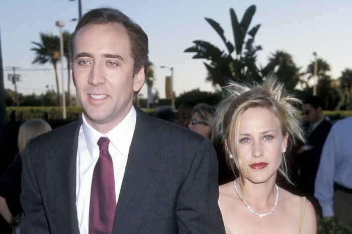 Первой женой актёра стала его коллега Патрисия Аркетт, которая вовсе не была в восторге от Кейджа. Но он так хотел завоевать сердце красавицы, что предложил ей дать ему любое задание, чтобы он смог её впечатлить. Актриса была уверена: Николасу никогда не добыть автограф Джерома Сэлинджера, свадебный наряд тибетского племени, статую, стоящую на входе в один из ресторанов, и чёрную орхидею. Он принёс возлюбленной всё, правда, чёрные орхидеи тогда ещё не были выведены, и он попросту покрасил обычную. Но своё согласие стать его женой Патрисия дала лишь через семь лет, причём тоже весьма экзотично, заявившись к нему домой в латексном облегающем наряде и с тортом лилового цвета в руках. Но ожидание оказалось дольше, чем сам брак. Супруги прожили вместе шесть лет, а потом расстались, причём спустя много лет стало известно: они реально жили вместе меньше года, а после лишь изображали семью.