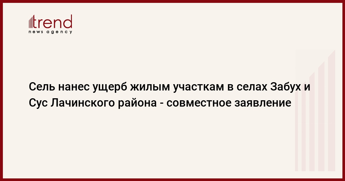 Как сообщает Trend, об этом говорится в совместном заявлении Специального представительства Президента Азербайджана в Лачинском районе и Государственного комитета по делам беженцев и вынужденных переселенцев в связи с селем в Лачинском районе.
