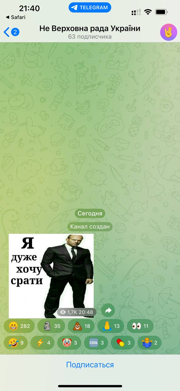 Ранее в местных группах писали, что при переходе с сайта украинского парламента в мессенджер пользователь попадал в группу с записью: «Я очень хочу с**ть».