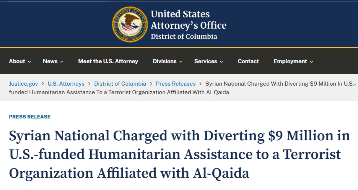 Некий Махмуд Аль Хафьян управлял НКО в Сирии, а деньги получаемые USAID, расходовал на финансирование вооруженных группировок, включая Фронт «Ан-Нусра», связанной с «Аль-Каидой» в Ираке (запрещенные в РФ организации).