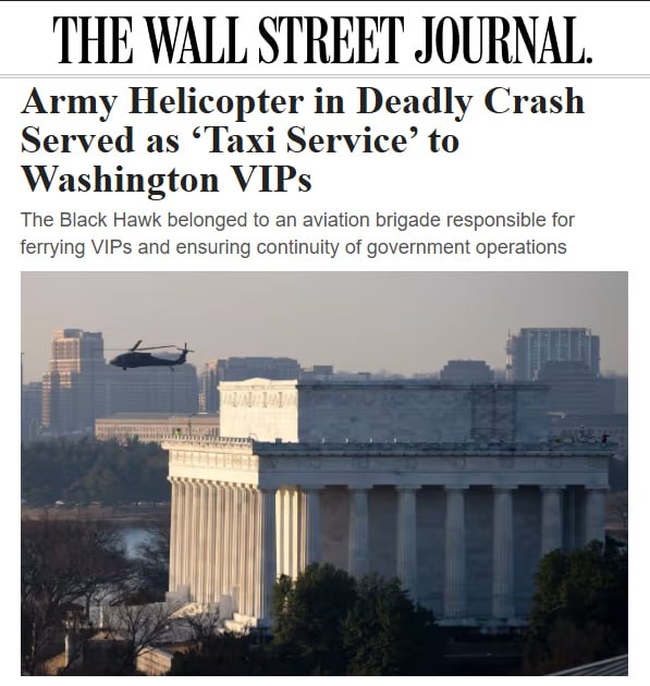 Столкнувшийся с самолётом в Вашингтоне вертолёт использовался как такси для VIP-персон – The Wall Street Journal