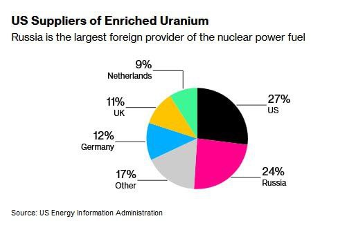 Инфографика показывает, из каких стран США закупают ядерное топливо на данный момент.