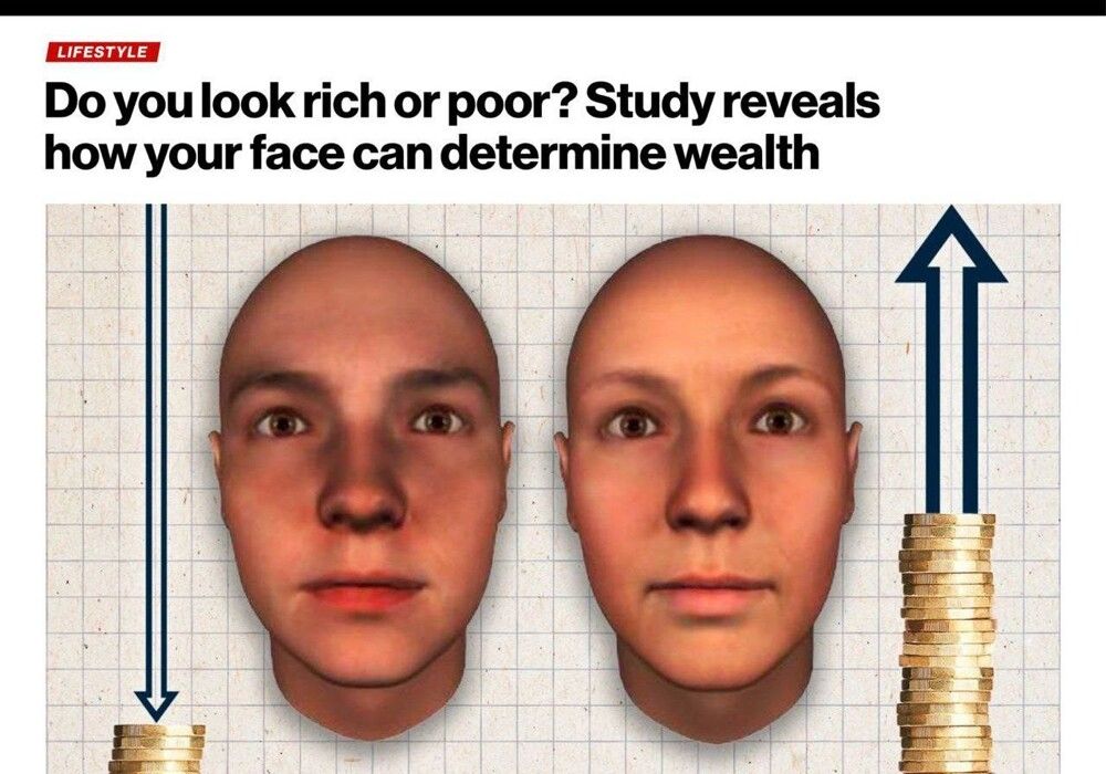 Новое исследование Университета Глазго (США) показало, что человеку достаточно одного взгляда, чтобы для себя решить, к какому классу принадлежит тот или иной человек. Вот ученые и задумались, что же заставляет кого-то выглядеть богатым или бедным, и как эта внешность связана с восприятием. Результаты, опубликованные в журнале экспериментальной психологии APA, показали, что люди с более узкими лицами, приподнятыми уголками рта, поднятыми бровями, близко расположенными глазами и светлым, теплым цветом кожи выглядели богаче. Испытуемые также ассоциировали эти черты лица с доверием, компетентностью и теплотой.