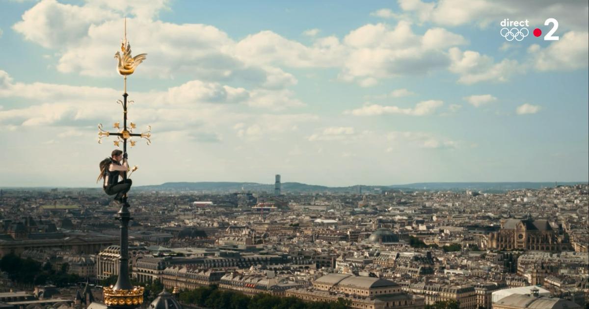 Quelques secondes après la fin de la séquence Synchronicité, qui mettait en scène des danseurs sur les quais et à Notre Dame de Paris, une silhouette bossue apparaissait juste sous la croix de la flèche de la cathédrale – à 90 mètres de hauteur. « Qui est là-haut? j'ai l'impression de reconnaître le personnage...» a lancé Laurent Delahousse, en commentant le «tableau» sur France 2. Il fallait bien sûr reconnaître Quasimodo, personnage du roman de Victor Hugo, Notre-Dame de Paris, qui a depuis été adapté au cinéma ou dans une comédie musicale. Mais aussi, et c'était le sens du sous-entendu du présentateur, Thomas Jolly, directeur artistique de la cérémonie d'ouverture, qui avait endossé les habits de Quasimodo, pour quelques secondes. Clin d'œil à Alfred Hitchcock, qui faisait toujours une apparition éclair dans ses longs métrages ? Hommage personnel de Jolly à ce patrimoine iconique de Paris ? Le caméo (terme désignant une insertion fugace dans un film) venait clore une séquence à la fois époustouflante et poétique, sur fond de musique de Victor Le Masne , composée à partir de bruits des outils des compagnons de Notre-Dame.