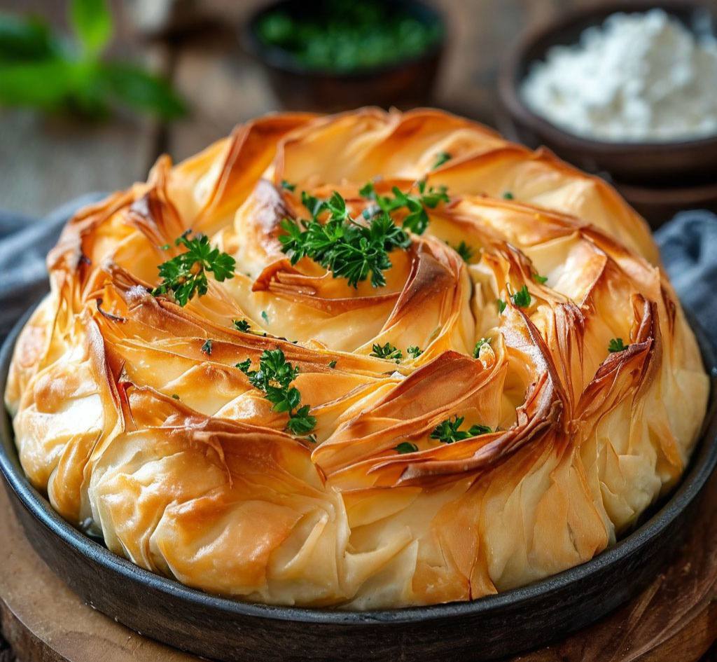 5. Нарвите тесто фило на небольшие кусочки. Выложите несколько на дно формы. Сбрызните маслом. Сверху распределите порцию начинки и разровняйте. Продолжайте чередовать слои.