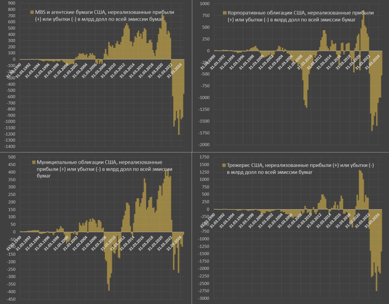 🔘Накопленный убыток по всем долларовым облигациям на 25 декабря 2024 может составлять около 4.8-5 трлн долларов. Это еще один потенциальный риск.