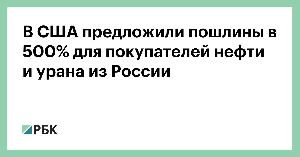 Речь, в частности, идет о 500-процентных пошлинах на импорт из стран, покупающих российскую нефть, газ, уран и другие продукты.