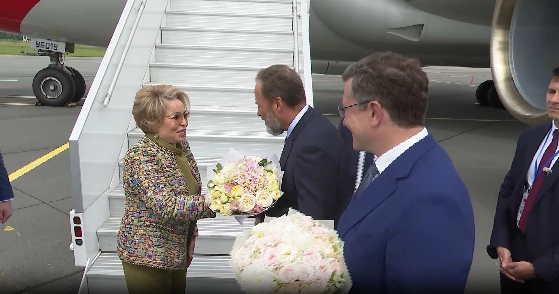 Видео: Пресс-служба правительства Нижегородской области. Валентину Матвиенко встречают в Нижнем Новгороде